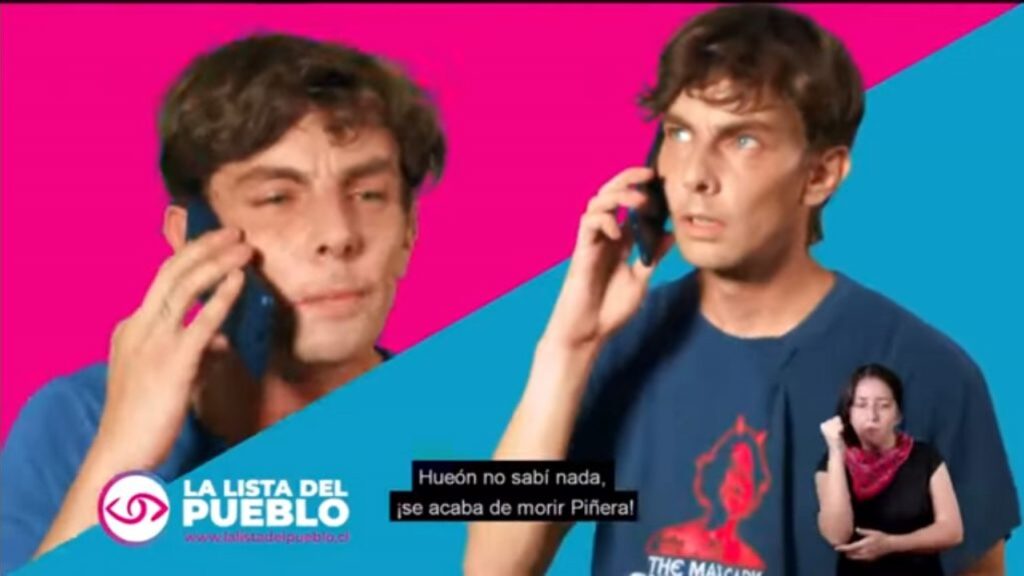 Entre las piezas audiovisuales se encontraba el espacio correspondiente a la “Lista del Pueblo”, donde se presenta a dos jóvenes hablando por teléfono sobre «la posible muerte del Presidente Sebastián Piñera».