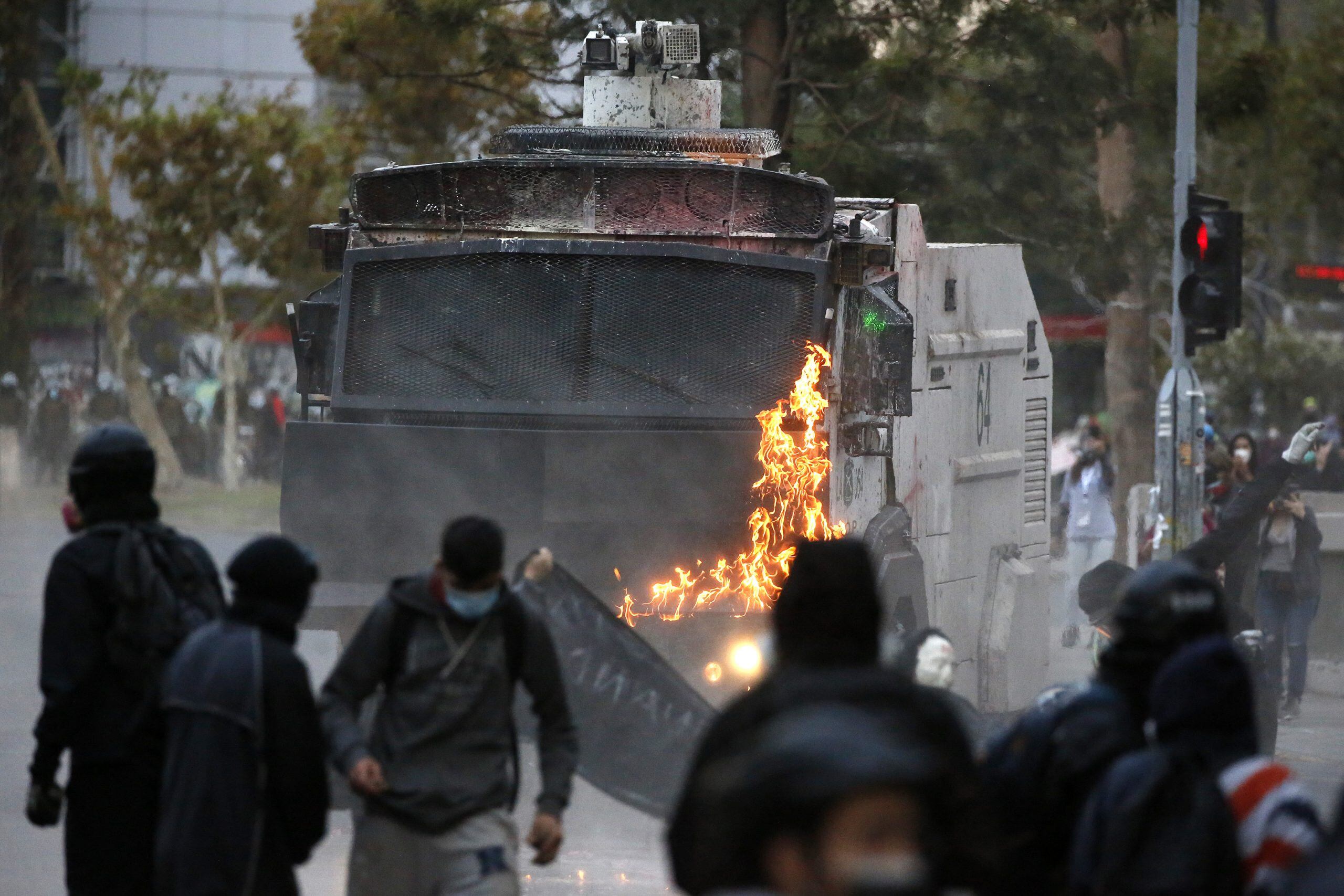 «Hasta este momento hay una cantidad de 48 detenidos, uno de ellos por lanzamiento de elementos incendiarios, bombas molotov. Se han producido daños menores a la infraestructura pública y afortunadamente no han habido carabineros lesionados hasta el momento», agregó, añadiendo además que «se actuó rápidamente, copando los espacios y restableciendo y restaurando el orden público quebrantado, de forma rápida y certera».