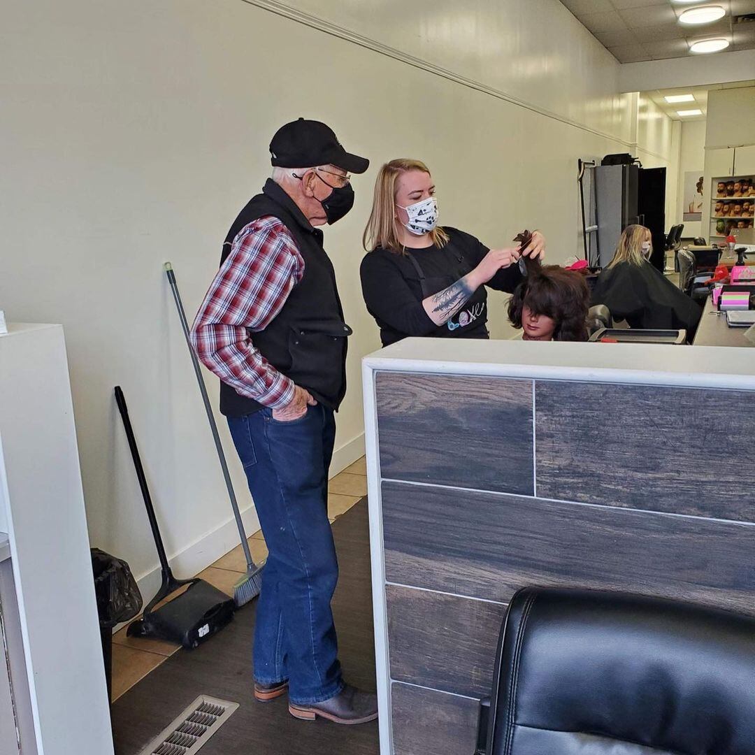 «Este encantador caballero vino hoy para aprender a rizar el pelo de su esposa. Su mujer no puede rizar su propio pelo y a menudo se quema a sí misma, así que se acercó y aprendió a rizar su cabello. ¡Tuvimos el placer de enseñarle!», expresó la peluquería Hair Design By Britney en Instagram.