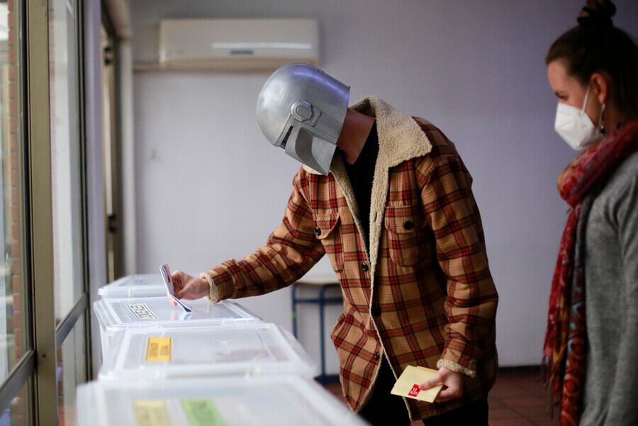 Un hombre sorprendió al llegar a votar disfrazado con una máscara de Mandalorian, en medio de las elecciones