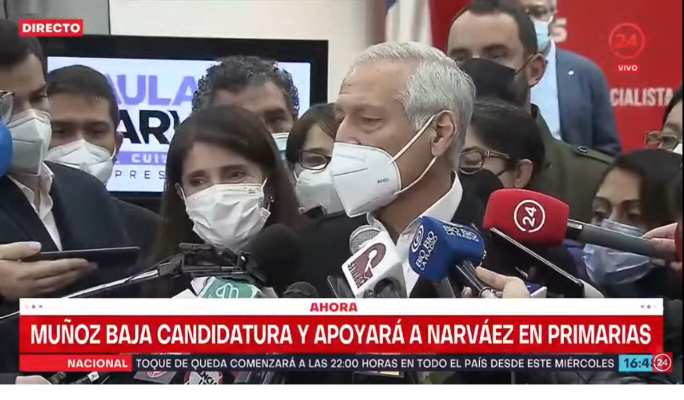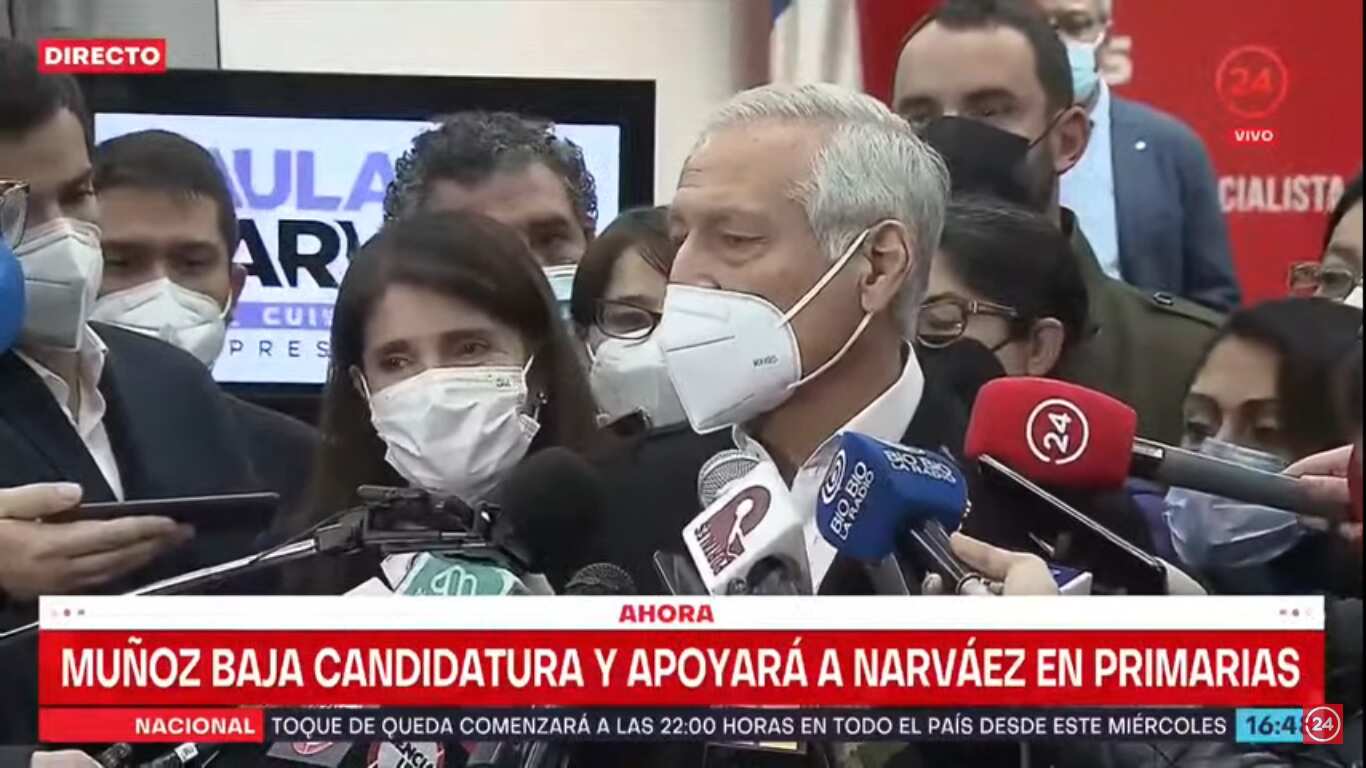 A las 16 horas el excanciller de Bachelet Heraldo Muñoz, líder del PPD, dijo que deponía su candidatura presidencial y apoyaba a la abanderada del PS Paula Narváez. Esta también fue ministra de Bachelet: ejerció como vocera. Narváez le agradeció el apoyo.