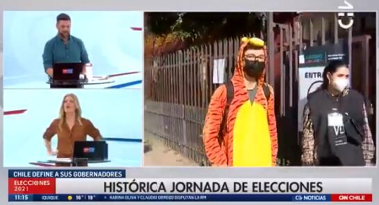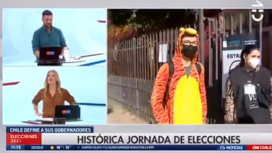 Ante las risas de Mónica Rincón y Rafael Cavada, el votante afirmó sobre el pijama de Tigger que «lo tenía guardado hace harto tiempo y dije, ‘hay que ocuparlo de vez en cuando'».