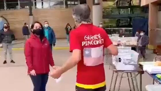 En esta oportunidad, el hombre, que vota en la comuna de Las Condes, fue retirado por personal del Ejército, por llevar una prenda con una alusión política en un centro de votación.