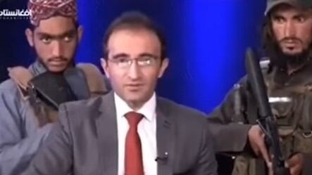 La escena, en la que se puede apreciar a Mirwais Haidari Haqdoost tratando de mantenerse tranquilo ante la amenazante presencia de los talibanes armados en el estudio, fue con motivo de un comunicado que el grupo entregó a la ciudadanía luego de asentarse definitivamente en el poder del estado afgano tras la partida del ejército norteamericano del país.