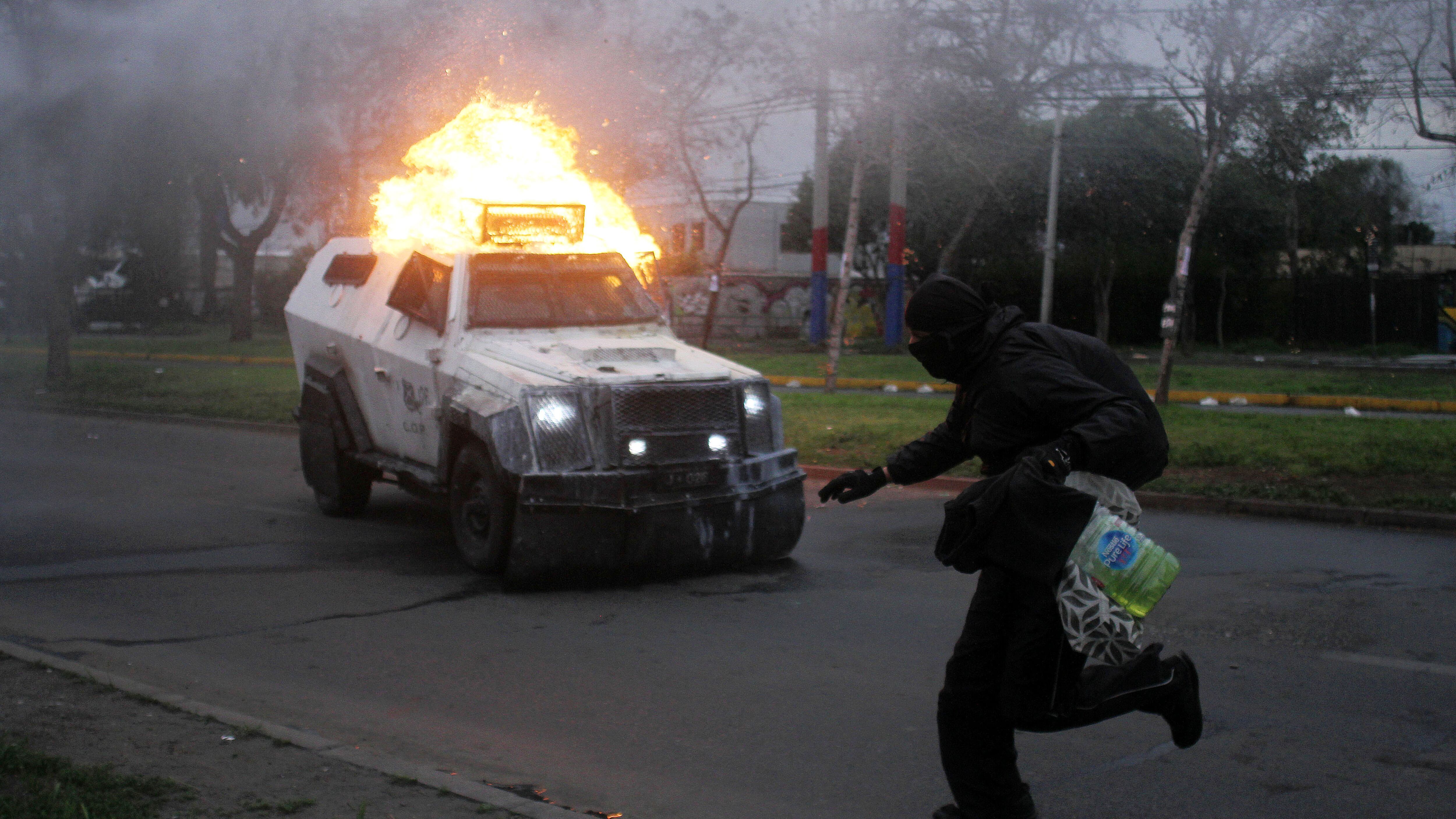 El intento de incendio de una bencinera Copec, un BMW quemado y la destrucción del pórtico de la Clínica Dávila fueron algunos de los hechos que se reportaron en la comuna.