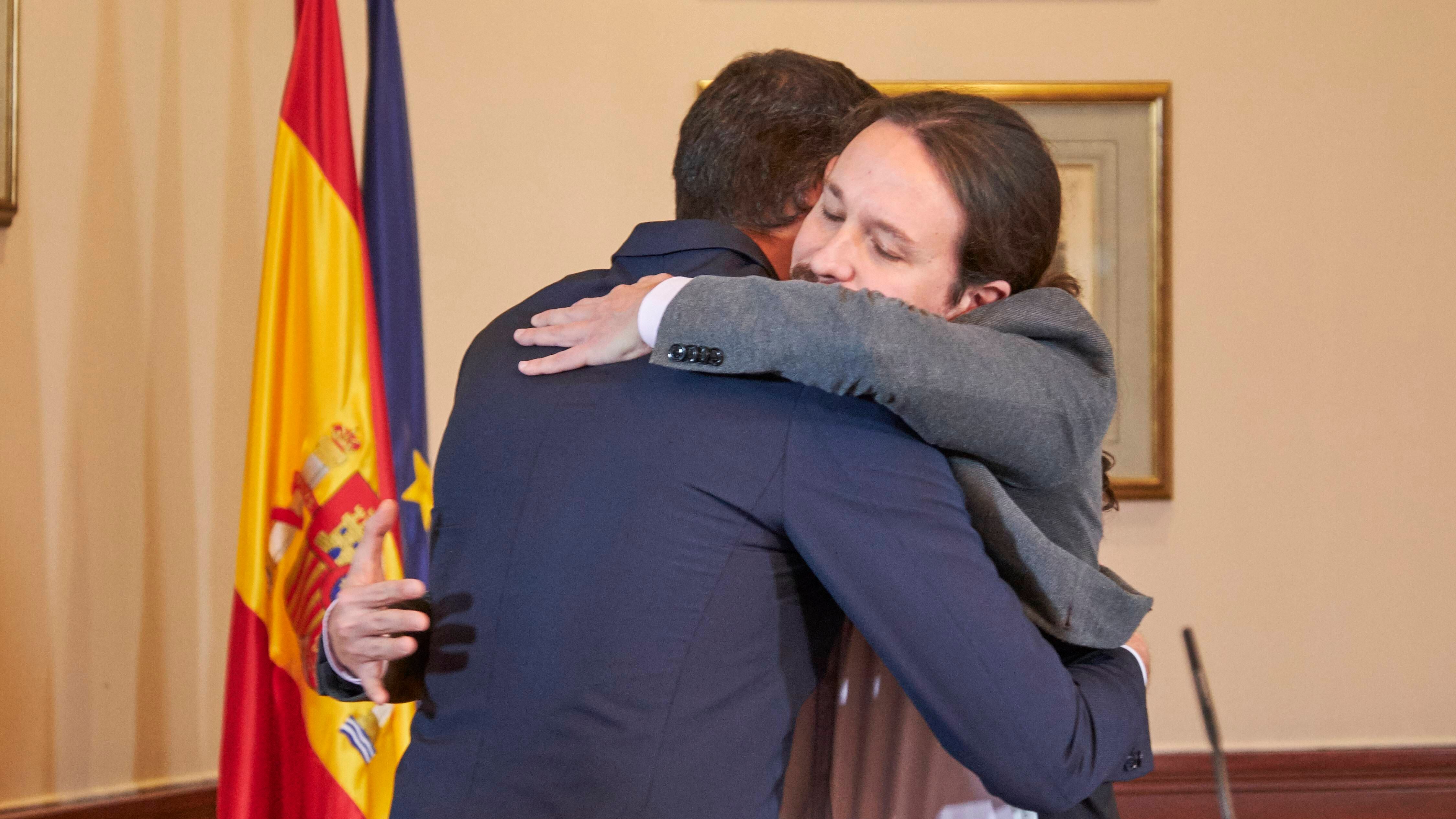 El presidente en funciones, el socialista Pedro Sánchez, apenas hace mes y medio aseguraba que ni él ni el 95% de los españoles dormirían tranquilos con Unidas Podemos y Pablo Iglesias en el gobierno de España, sin embargo, ayer se fundieron en un abrazo fraternal republicano que más bien recuerda al beso de Judas.