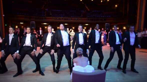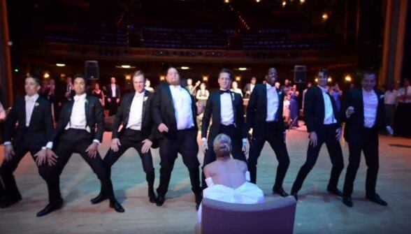 El bailarín Kirk Henning preparó junto a sus amigos un espectacular baile para asombrar a su esposa Valerie Tellman. La coreografía contaba con varias canciones populares y del gusto de los novios, ella alucinaba con lo profesional del baile.