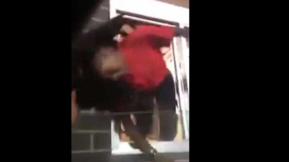 Este video difundido en YouTube muestra cómo una cliente furiosa de McDonald’s arremete contra una empleada de la ventanilla de autoservicio, jalandola violentamente del cabello hasta sacarla del establecimiento.