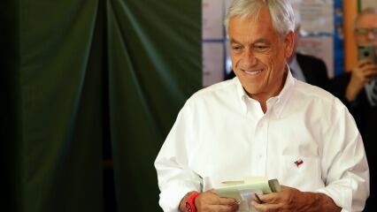 El candidato presidencial de Chile Vamos, Sebastián Piñera, vota en el Colegio República de Alemania.