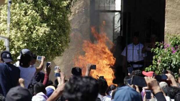 Posteriormente, la multitud les roció una sustancia inflamable y los quemaron a ellos y su vehículo.