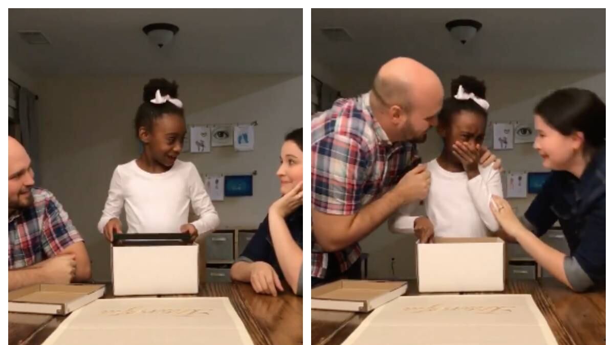 “Este será mi video favorito para siempre que alguna vez comparto ¡Este fue el día en que le dijimos a nuestra hija que íbamos a poder adoptarla a ella (y a su hermano y hermana)!”, escribió.