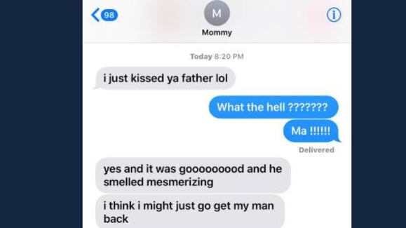El sujeto publicó la conversación con su madre, la que sin “aviso previo” le escribió “acabo de besar a tu padre”, para luego agregar “creo que podría recuperar a mi hombre”.