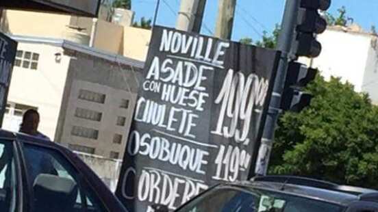 Allí aparece «asade con huese», «cordere», «noville», «osobuque» y «chulete», según informa ADN Sur.