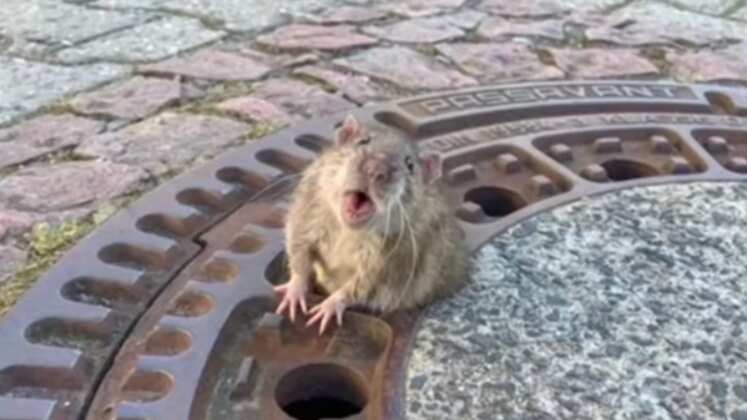 Un complejo operativo de rescate se registró en la ciudad de Bensheim, Alemania, luego que una rata, muy gorda, quedara atascada en la tapa de una alcantarilla en medio de una transitada calle.