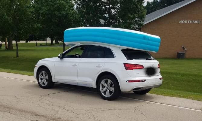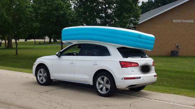 Subió la piscina inflable hasta el techo de su vehículo, luego metió a sus hijos en el interior para evitar que se volara y emprendió la marcha de regreso.