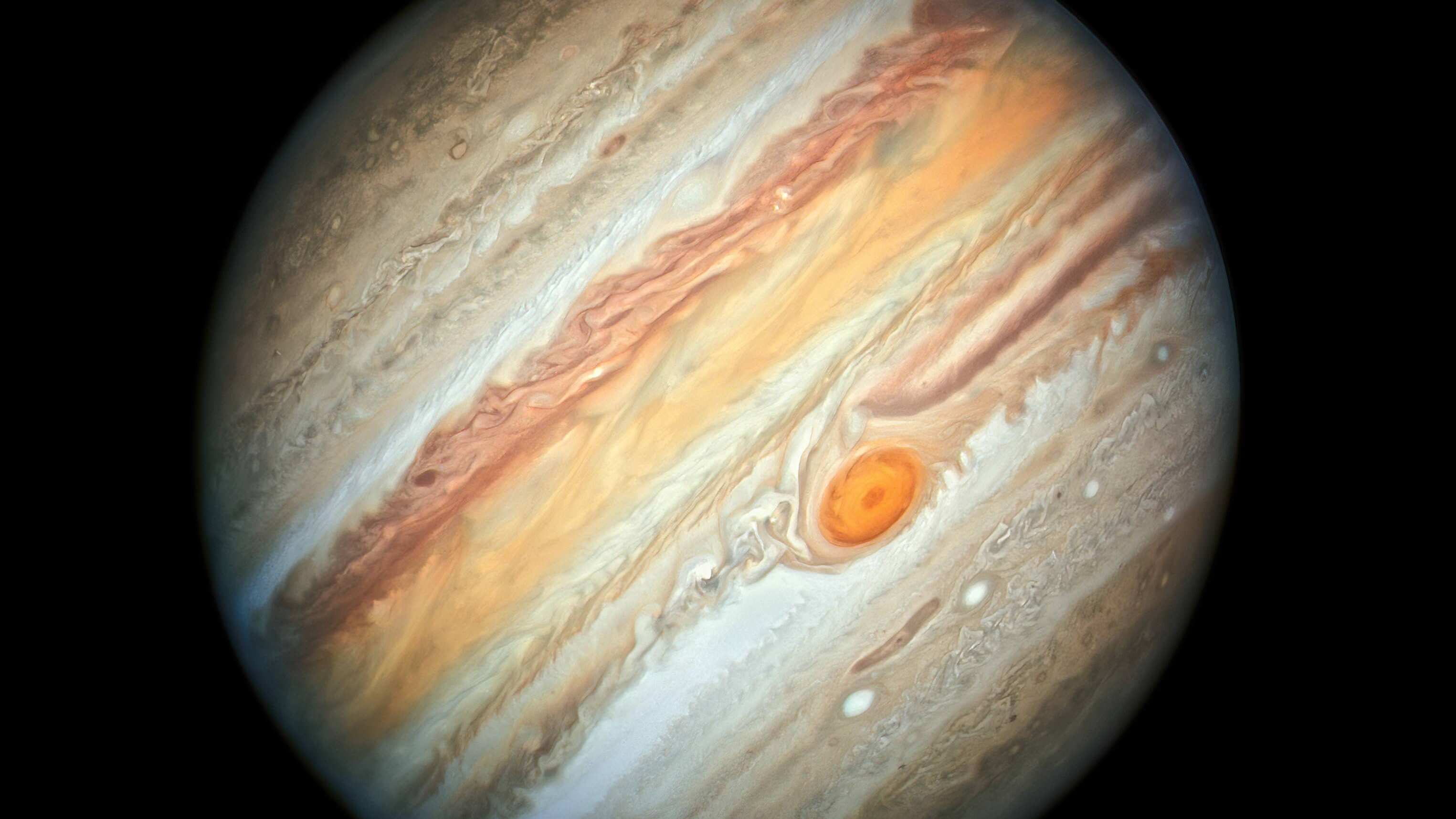 Al igual que con las imágenes anteriores de Júpiter tomadas por Hubble, y otras observaciones de telescopios en el suelo, la nueva imagen confirma que la gran tormenta que ha azotado la superficie de Júpiter durante al menos 150 años continúa reduciéndose. «La razón de esto aún se desconoce, por lo que Hubble continuará observando a Júpiter con la esperanza de que los científicos puedan resolver este enigma tormentoso. Tormentas mucho más pequeñas aparecen en Júpiter como óvalos blancos o marrones que pueden durar tan solo unas pocas horas o extenderse durante siglos», dice el informe.