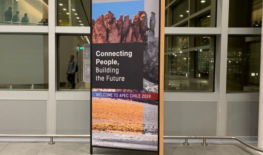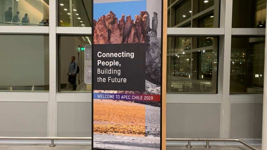 El aeropuerto con hartos letreros de APEC y COP… pic.twitter.com/v8slfWc60X