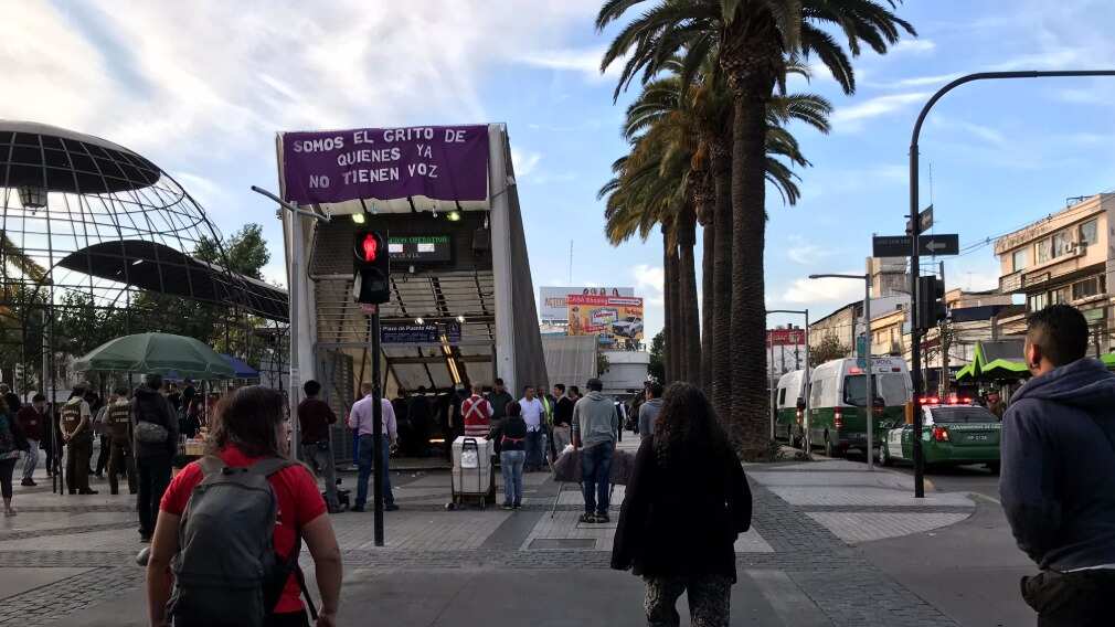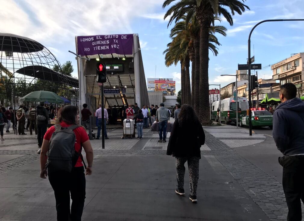 Manifestaciones al exterior de la estación Plaza de Puente Alto (L4) obliga al cierre temporal de los accesos. pic.twitter.com/t6BWxWTfqN