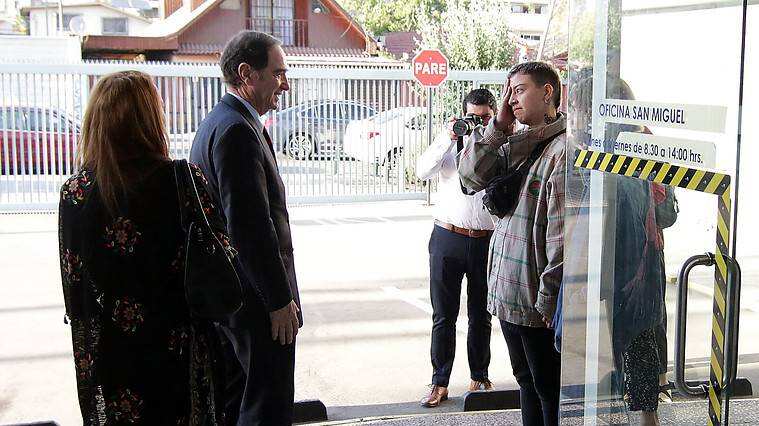 El ministro de Justicia Hernán Larraín acudió este lunes a una oficina del Registro Civil en San Miguel acompañar a las dos primeras personas que fueron a solicitar hora para realizar el cambio de sexo registral.