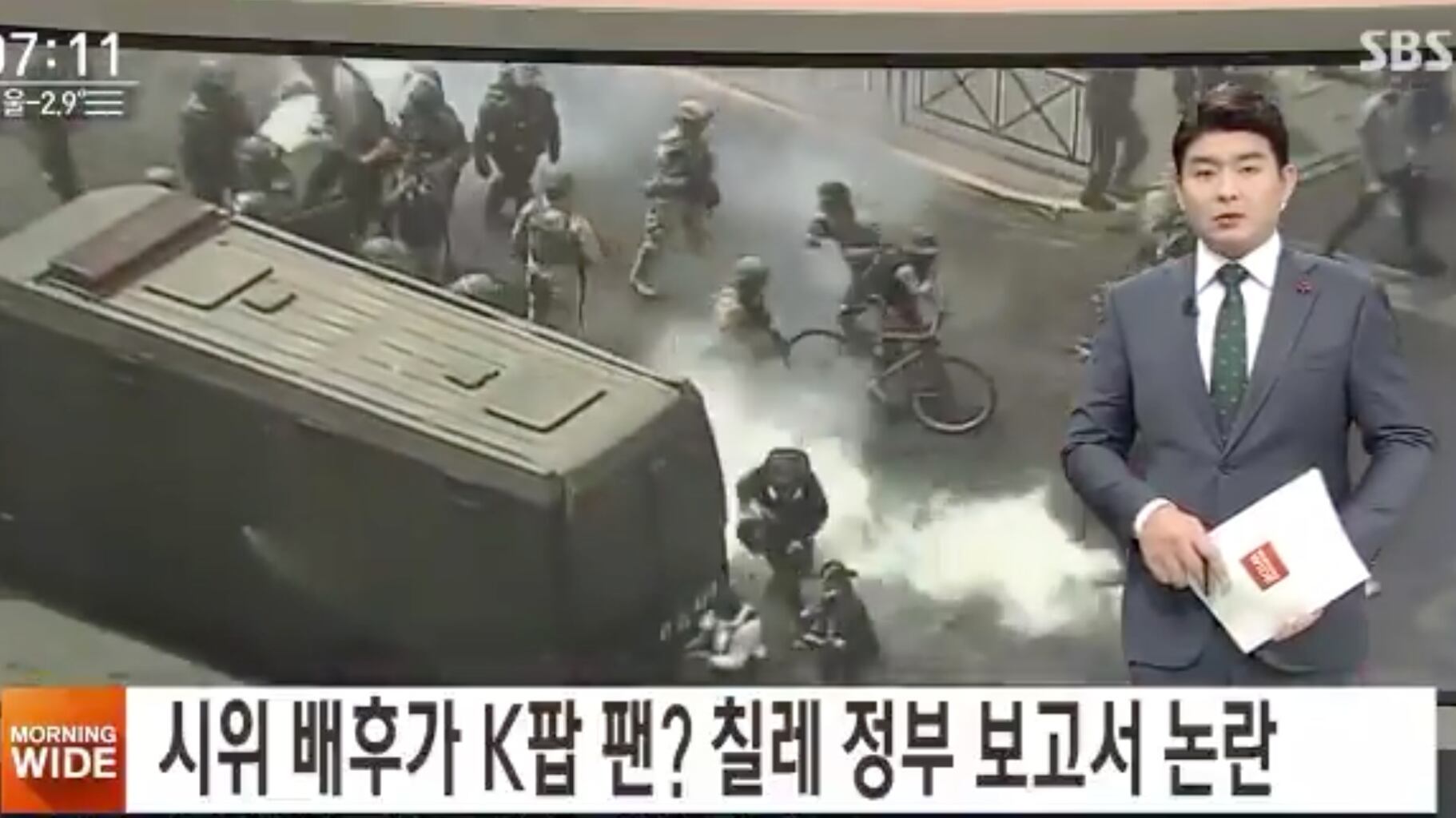 Por su parte Yonhap, la principal agencia de noticias de Corea del Sur, tituló «¿K-pop detrás de las protestas en Chile?», en donde destacaron los memes y burlas en redes sociales que desató el informe. También hacen alusión a esto último dos informes de las cadenas televisivas KBS y SBS.