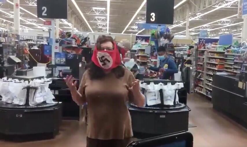 En un supermercado de la cadena Walmart en Minnesota llegó una pareja portando mascarillas con una esvástica, en el primer día en que se aplicó la obligación de usar cubreboca en ese estado.