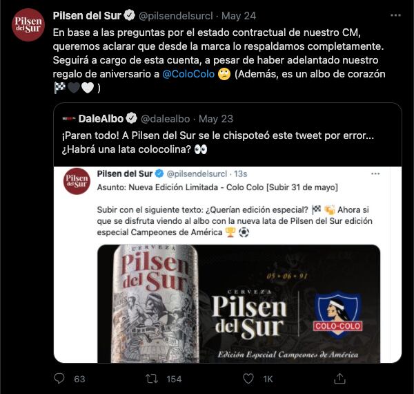 El nombre del CM implicado es Cristián Zenteno, es hincha de Colo-Colo y dirige las redes sociales de la misma cervecería. Sin embargo, no se tomaron cartas en el asunto.