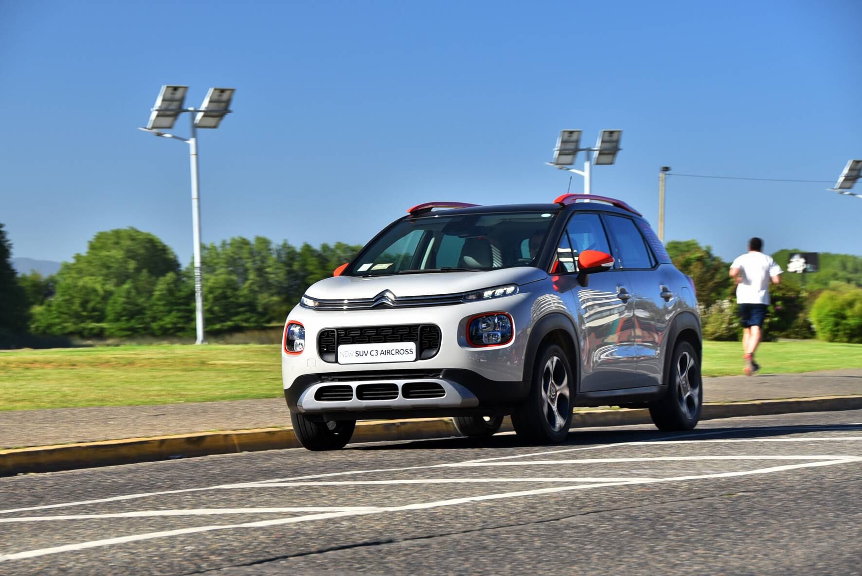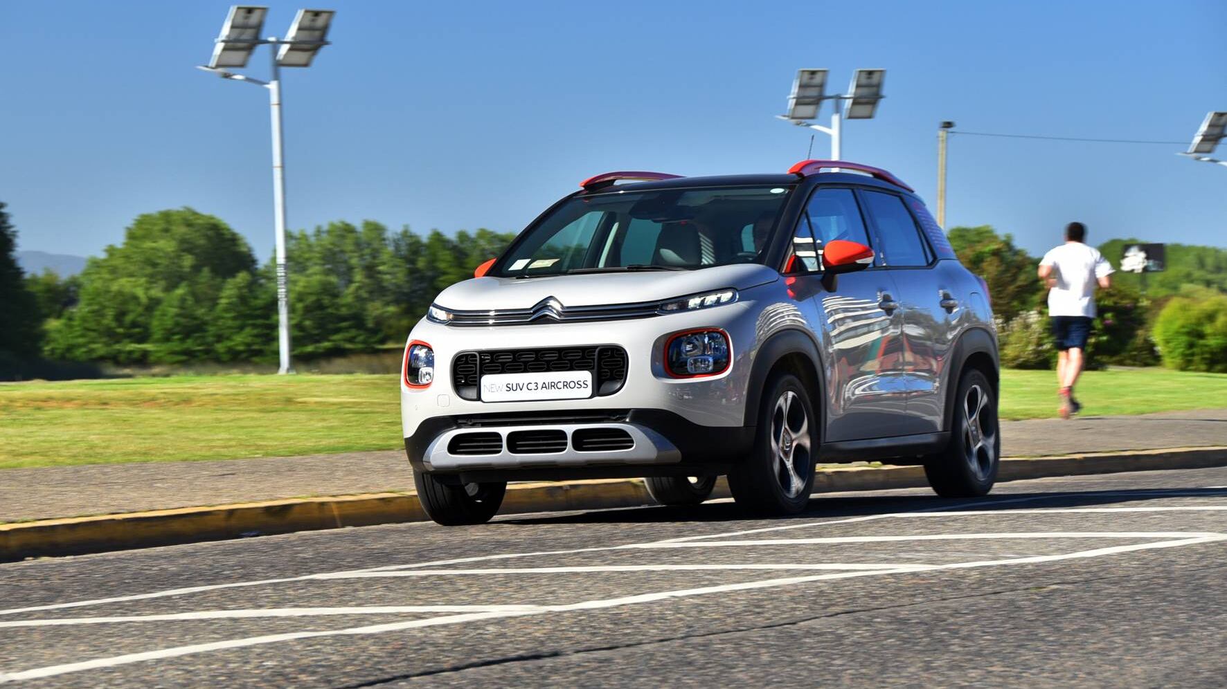 El New Citroën C3 Aircross es un SUV compacto, de 4,15 metros de largo, 1,76 de ancho y 1,64 de alto, que se distingue por su fresca actitud. Ofrece un diseño representativo de los nuevos modelos de Citroën, con todos los atributos de un SUV robusto y protector, incluyendo una mayor distancia del suelo (175 milímetros), una posición de conducción elevada, placas de protección delanteras y traseras, y ruedas grandes (16 y 17 pulgadas).