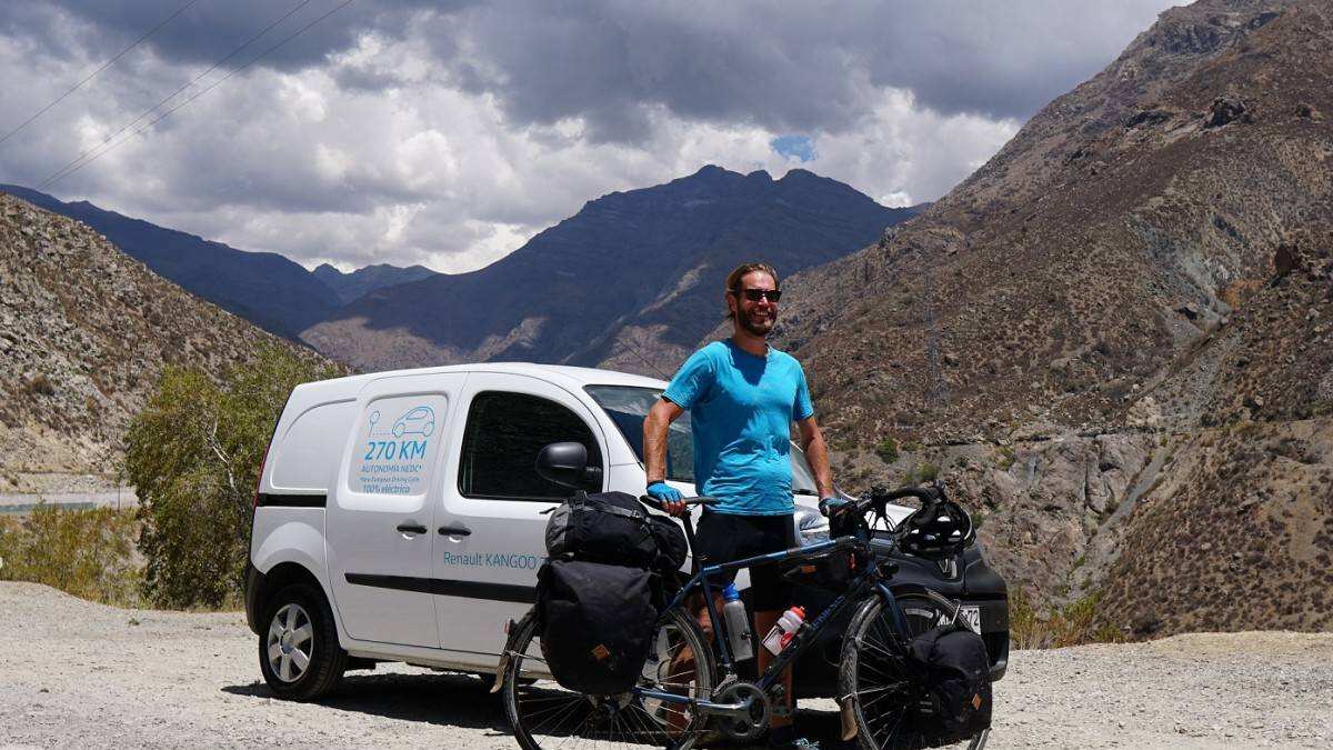 Durante su estadía en Chile, el aventurero pretendía asistir a la COP25, cita que se suspendió a la larga, pero estuvo con el Kangoo ZE en otras instancias, entre las que destaca el Festival Internacional de Innovación Social (FIIS) y a la Sociedad Civil por la Acción Climática (SCAC).