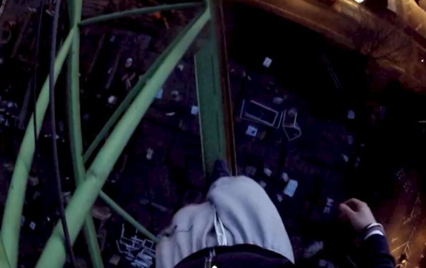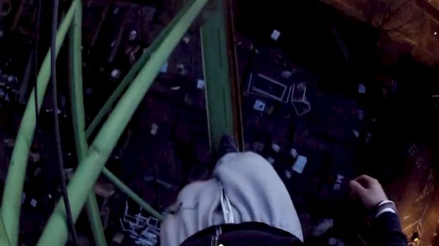 Tal como se muestra en este video, unos jóvenes escalaron hasta una grúa de construcción en Wellington, Inglaterra, para grabarse arriesgando su vida en las alturas.