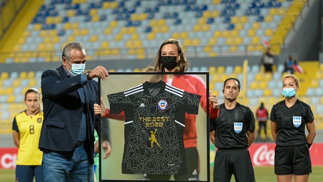 La pequeña ceremonia en cancha fue organizada por la ANFP, quienes quisieron reconocer y galardonar el histórico logro alcanzado por la portera nacional.