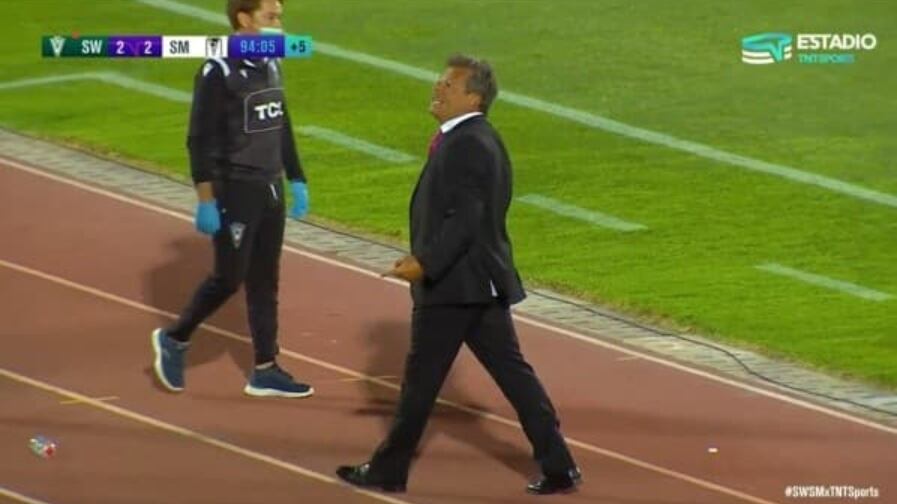 Jorge Garcés, director técnico de Santiago Wanderers, tuvo una grosera reacción ante un grupo de hinchas del “Decano”, tras el agónico gol que sentenció el empate 2-2 ante Santiago Morning ayer martes en Valparaíso.