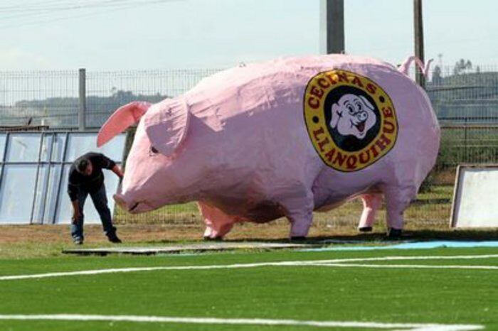 Según 24 Horas, la figura medía 2,40 metros de altura y pesaba 500 kilos, correspondiendo a una pieza publicitaria de una empresa de cecinas que se instalaba en la zona norte del estadio, pero que se robaba todas las miradas de los asistentes al estadio y se convirtió en todo un clásico del fútbol nacional.
