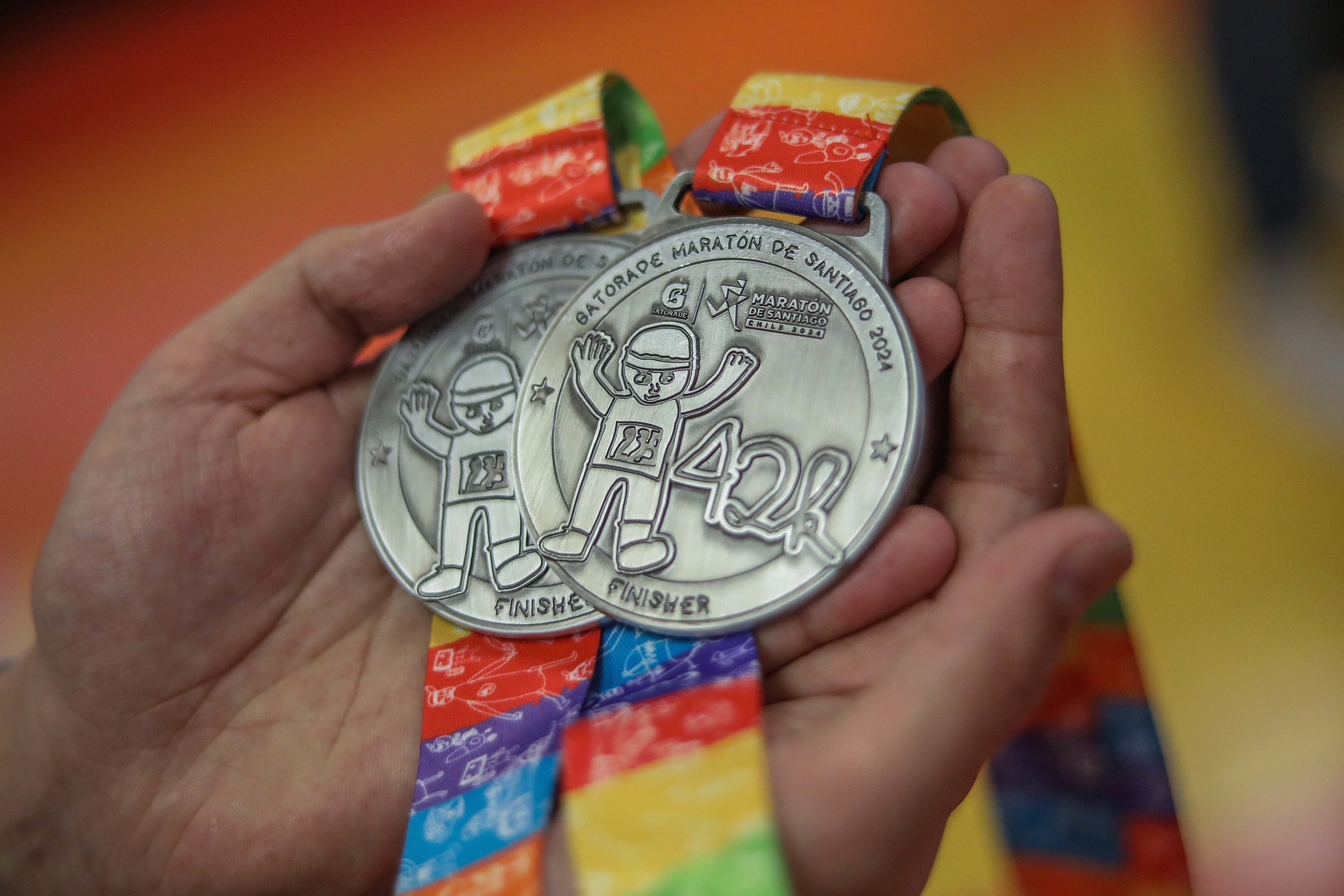 Las medallas fueron presentadas durante la jornada de este martes 16 de abril, por Mario Kreutzberger, cofundador y director honorario de Teletón, y Francisca Aguirre, directora ejecutiva de Gatorade Maratón Santiago.