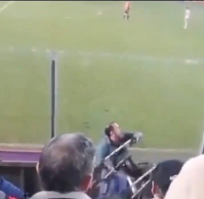 De acuerdo a lo que se puede apreciar, el incidente ocurrió en la tribuna lateral sur del Estadio Santa Laura, debajo del sector de marquesina, cuando se jugaban los descuentos del partido y la Unión Española caía por un gola cero frente a La Calera, que finalmente se quedó con el triunfo.