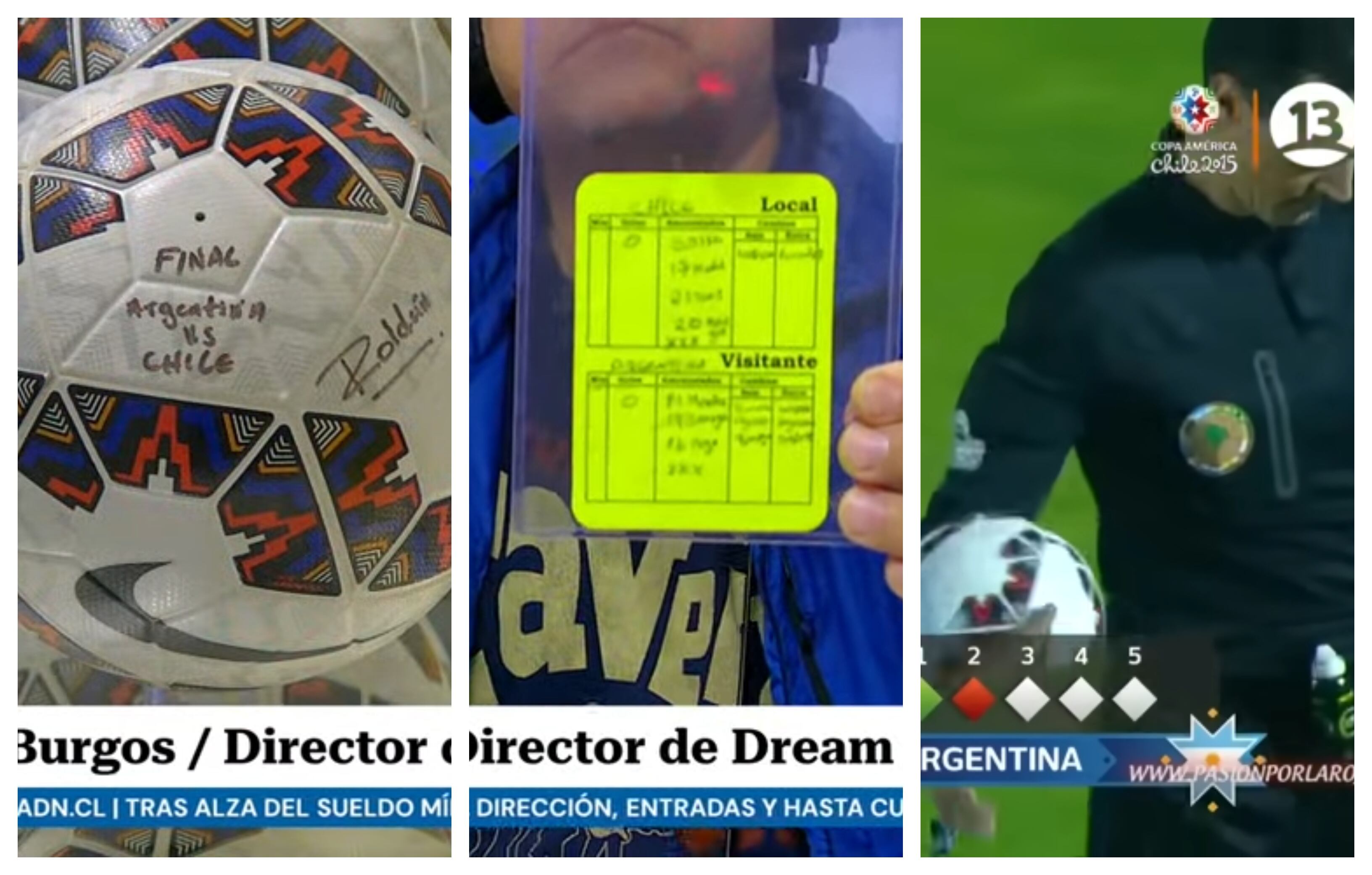 “En octubre de 2023 vino al país Wilmar Roldán a arbitrar el partido entre Chile y Perú. Fui al hotel con la pelota y las tarjetas (roja y amarilla, que también había recibido el coleccionista colombiano), me recibió y le conté lo que tenía. Se sorprendió. Es un objeto de culto para nosotros, el balón más importante en la historia del fútbol chileno y lo tenemos de regreso en el país. Miró todo y reconoció que eran suyos, que esa noche se jugó con dos balones. Uno, con el que jugaron los noventa minutos, y se quedó él, y el otro balón fue el de los penales y tenemos nosotros”, contó Burgos.