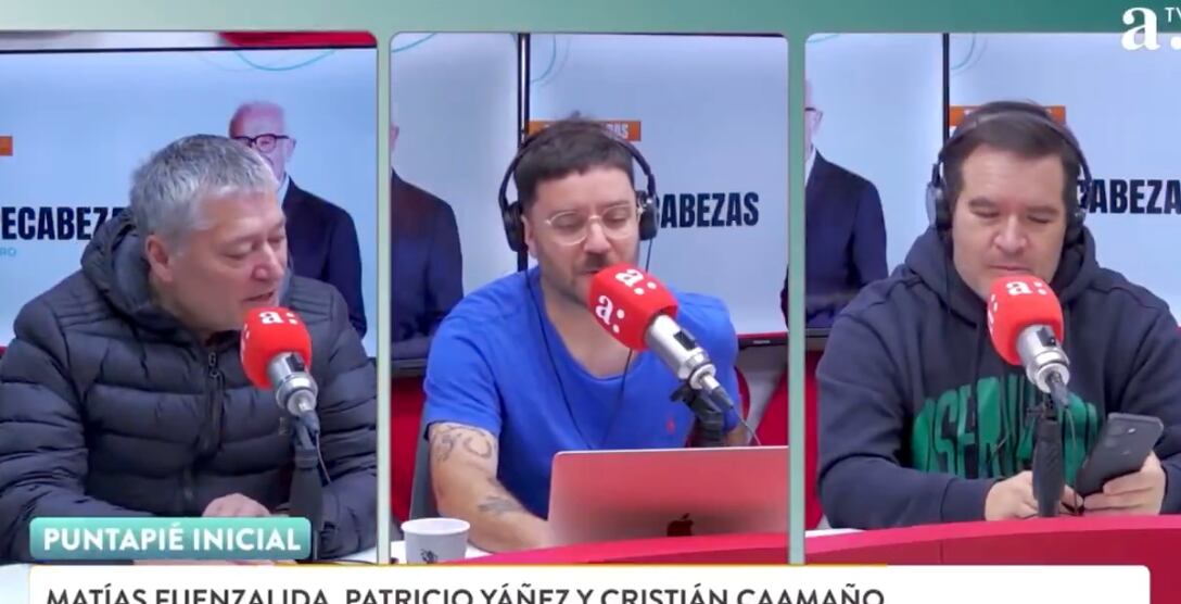 Matías Fuenzalida, Cristián Caamaño y Pato Yáñez son quienes están a cargo del programa deportivo de Radio Agricultura, ‘Puntapié inicial’, que este lunes se transformó en todo un viral. Y es que grato ambiente laboral ah...