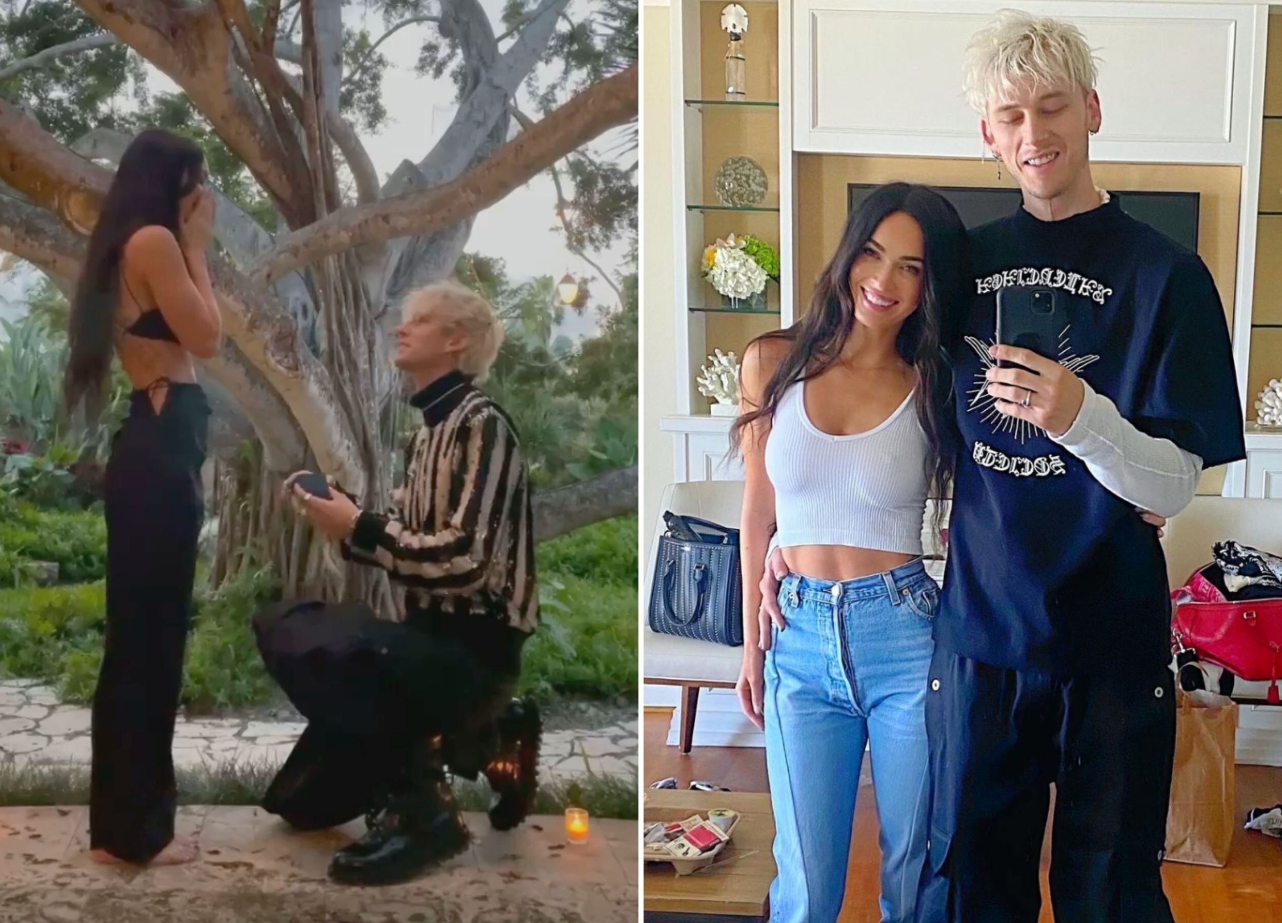 Mientras que Gun Kelly mostró un video del anillo y contó la historia de cómo fue que lo diseñó: “‘Sí, en esta vida y en todas las vidas’ bajo las mismas ramas bajo las cuales nos enamoramos, la traje de vuelta para pedirle que se casara conmigo. Sé que la tradición es un anillo, pero lo diseñé con Stephen Webster para que fueran dos: la esmeralda (su piedra de nacimiento) y el diamante (mi piedra de nacimiento) engastados en dos bandas magnéticas de espinas que se unen como dos mitades de la misma alma, formando el oscuro corazón que es nuestro amor”.