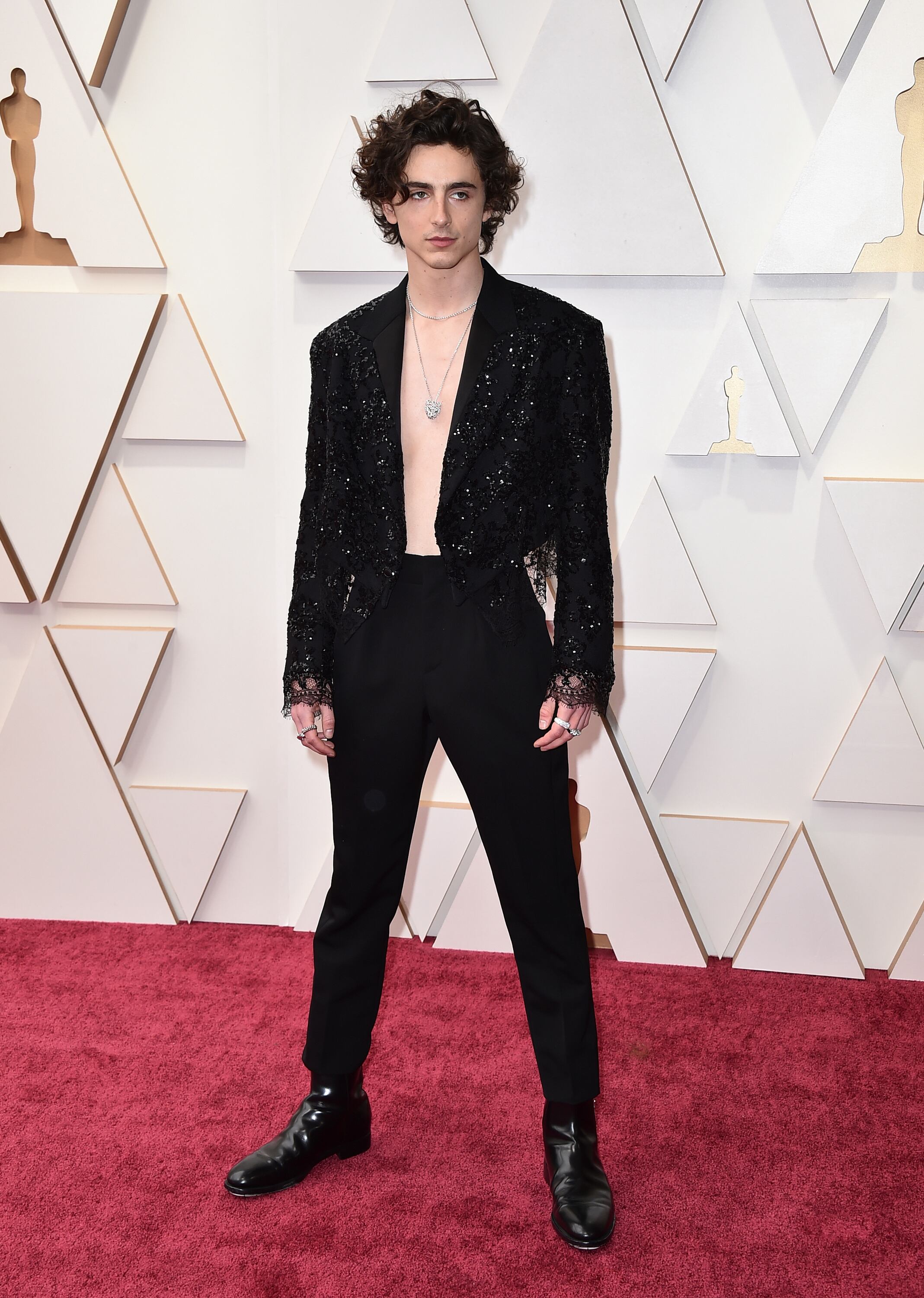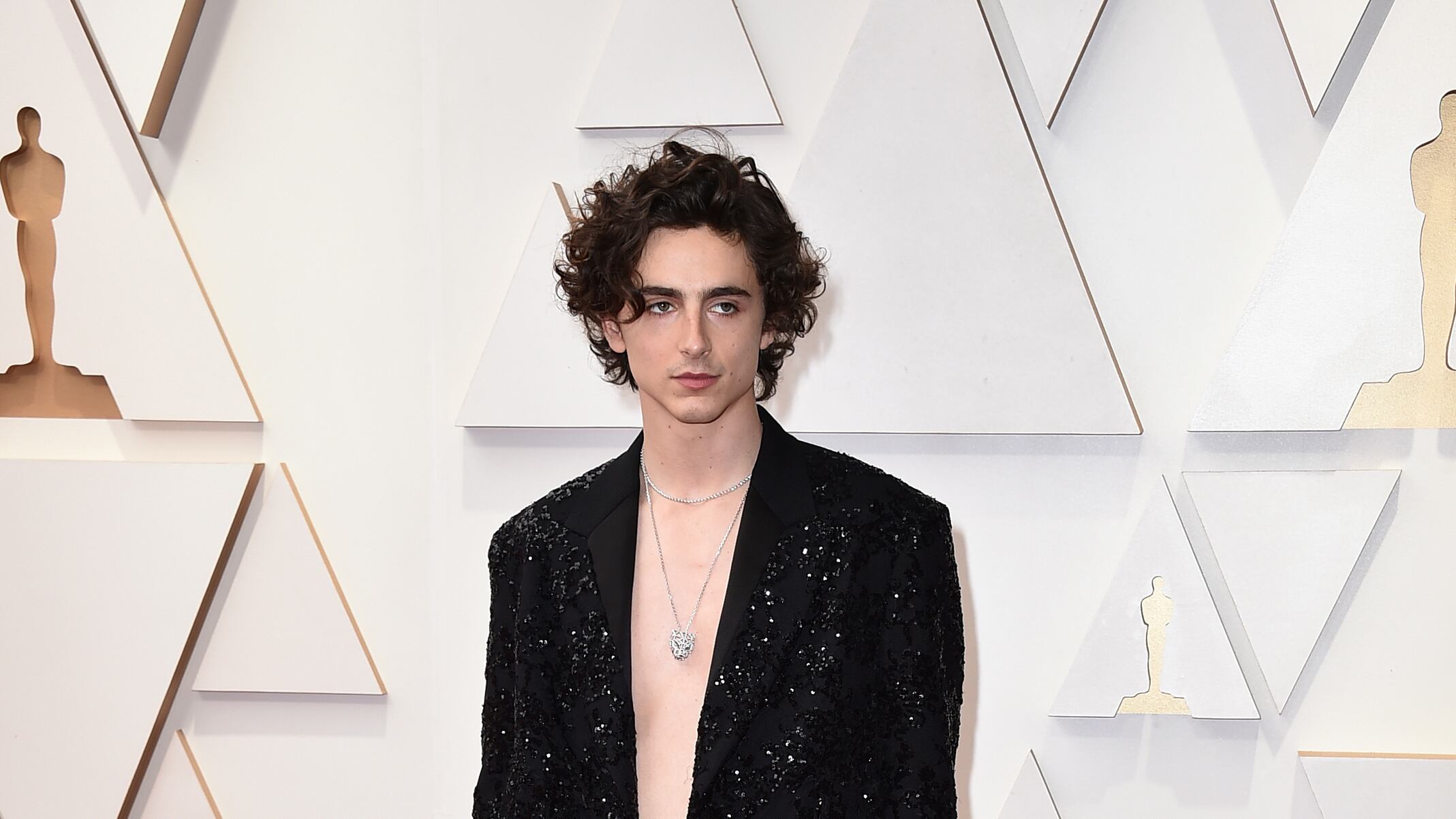 En esta ocasión, el joven protagonista de “Dune”, del director Denis Villeneuve, nominada al Oscar a Mejor Película, apostó por un blazer negro con lentejuelas de la última colección femenina de Louis Vuitton, que inmediatamente encendió las redes sociales, transformándose en primera tendencia mundial en Twitter.