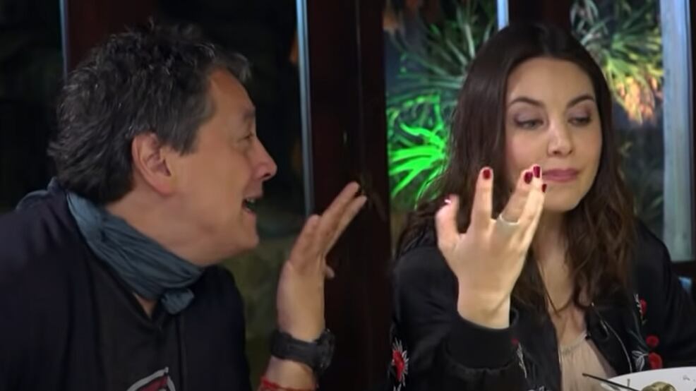 Acto seguido, dijo en tono de broma que no comería con la mano porque “si como con la mano la Mónica ahí me escupe”, desatando la molestia de ella y colocando el tema del doble sentido sobre la mesa.