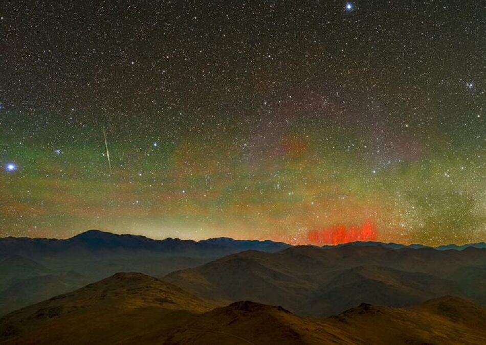 Desde el instituto científico informaron que la fotografía fue tomada en la plataforma del telescopio de 3,6 m de ESO en La Silla, en medio del desierto de Atacama en Chile. Por su gran altitud y la falta de contaminación lumínica, La Silla es perfecta para capturar estos fenómenos inusuales.