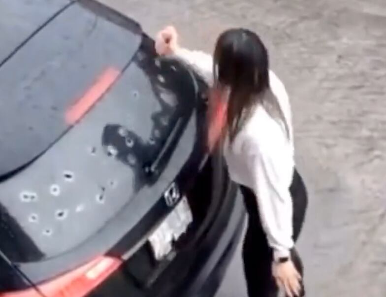 En el video que ya ha dado la vuelta en Twitter, se ve a la joven tomar un picahielos y destrozar la parte de uno de los focos y el vidrio delantero del vehículo.