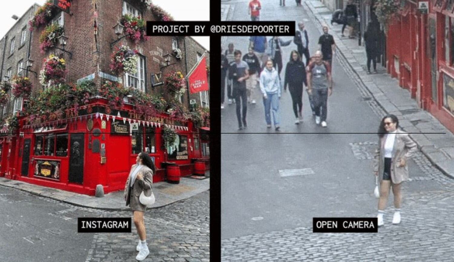 Por lo que se puede ver en los videos de ejemplo, entre los lugares que la inteligencia artificial de Depoorter ha rastreado se encuentran Times Square (Nueva York), Temple Bar (Dublín) y la fachada del estadio Wrigley Field (Chicago).