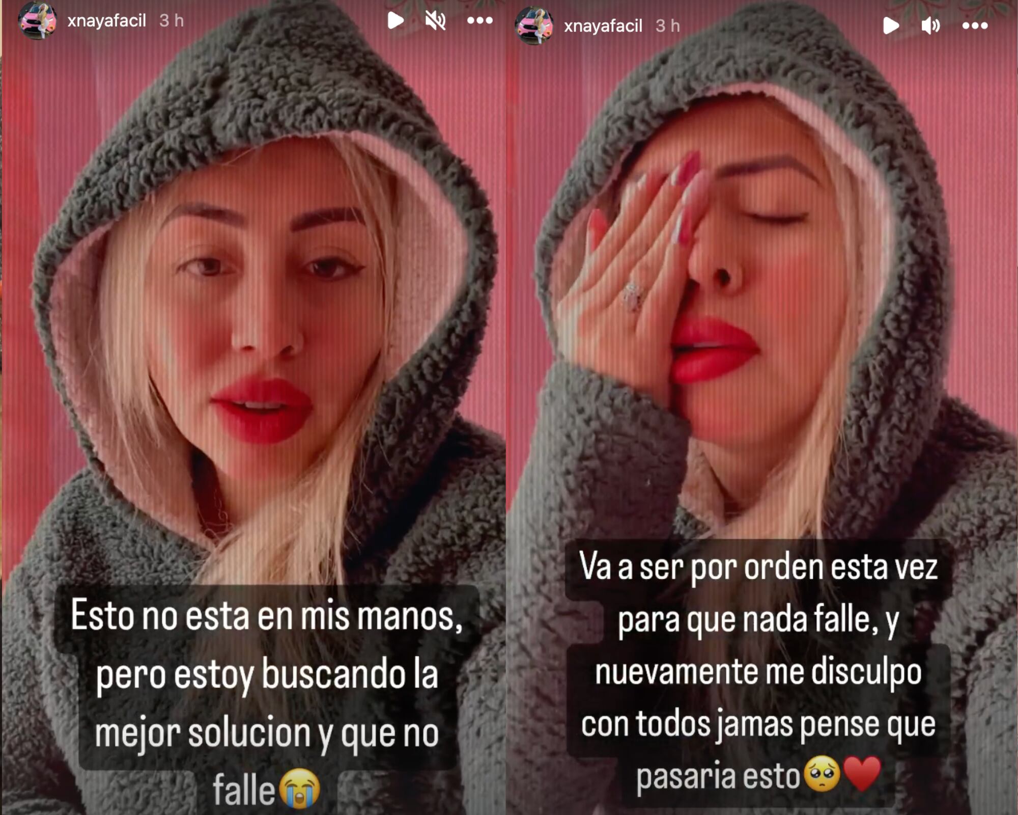 Naya empezó a explicarle a sus “facilines” los problemas que están sucediendo tras bambalinas “yo contraté unos chicos para la página web y nada qué decir de ellos, me han estado dado soluciones, me han estado ayudando, fueran otros quizás ya se hubiesen echado al pollo, pero no, han estado ahí full ayudándome (...) Nosotros sí pensamos que iba a haber un alcance de harta gente y todo el tema, hicimos una página normal, común y corriente”, contó Naya.