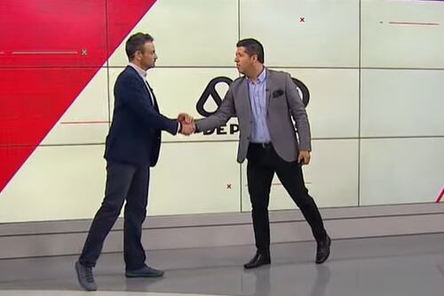 “¿Cómo esta señor? Déjeme saludarlo”, inició el periodista deportivo, quien fue directo a Ramírez para darle un fuerte apretón de manos, que fue inmediatamente respondido por el conductor del noticiario.