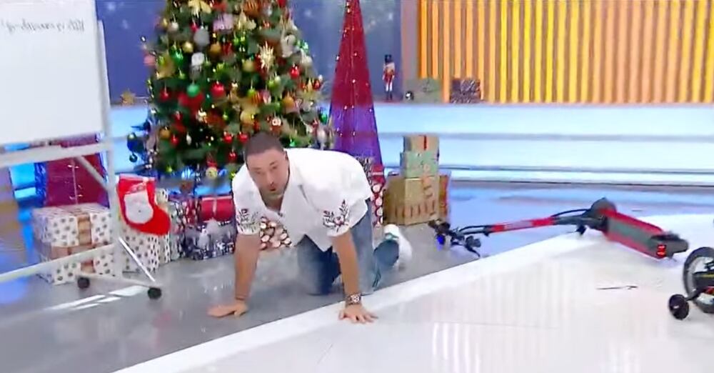 Sin embargo, el periodista sufrió un accidente en el scooter y terminó en el piso, lo que despertó las risas de todos en el estudio. Una vez que se pudo conectar el audio del micrófono, Neme dijo que “quise evitar un impacto, traté de salvar el árbol, quise salvar el árbol de pascua”.