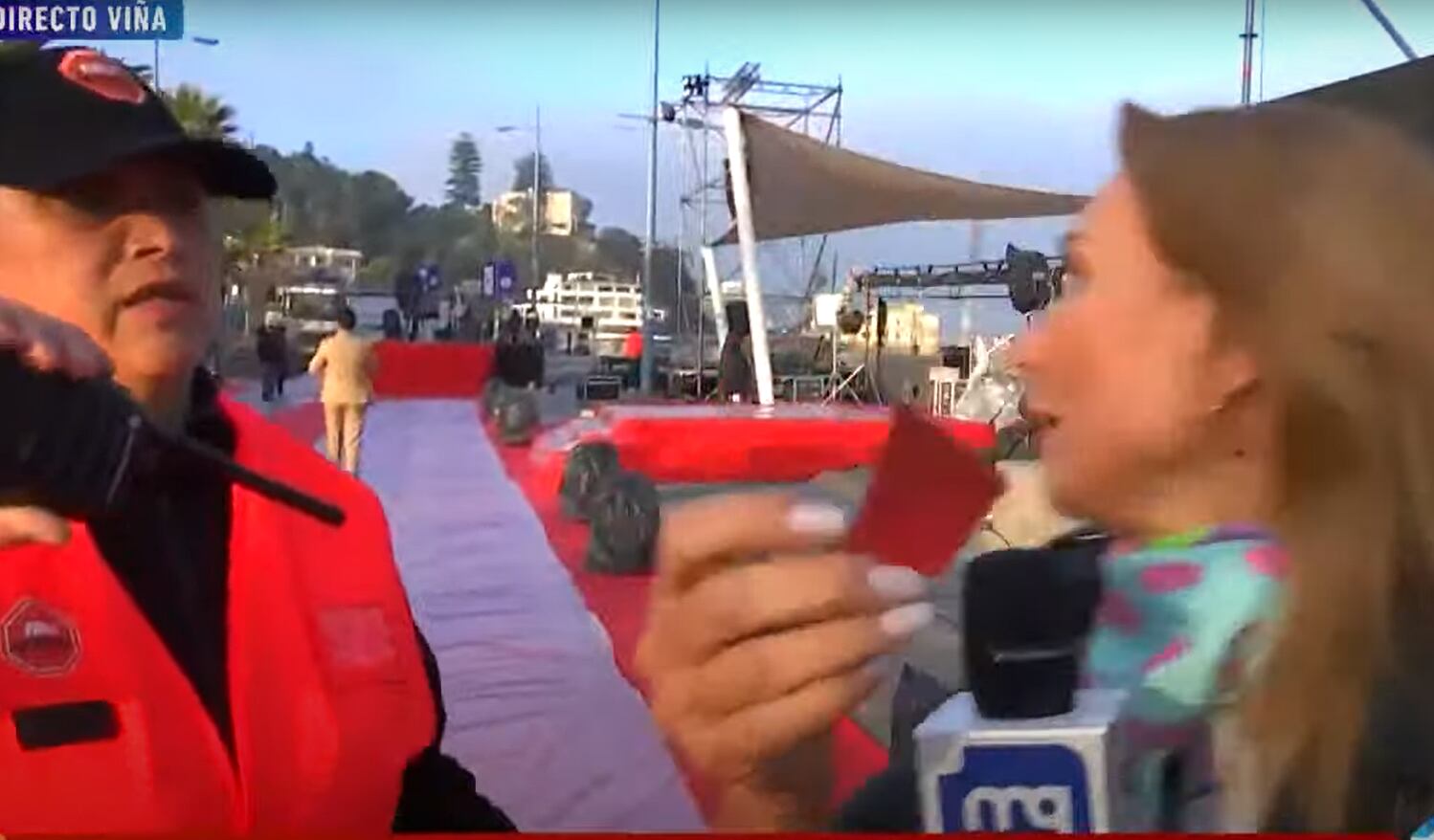 El audio viral “íbamos tan bien”, caería como anillo al dedo al impasse que vivió la animadora Karen Doggenweiler junto a Andrés Caniulef cuando entrevistaban al colega Gino Costa en la alfombra roja instalada en la costanera de Viña del Mar, donde preguntaban detalles de lo que será la gala del Festival. Pero, la interrupción de una implacable guardia sacó cascando a la pareja de “Mucho Gusto”.
