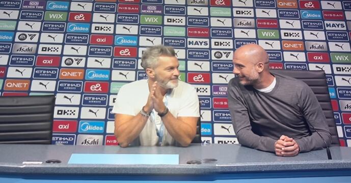 “Una conversa tranqui con el CAMPEÓN 🏆 Pep Guardiola @pepteam. ¿Es el MEJOR TÉCNICO de la historia? Para mí SÍ. Si no, quién es?”, expresó contento el animador.