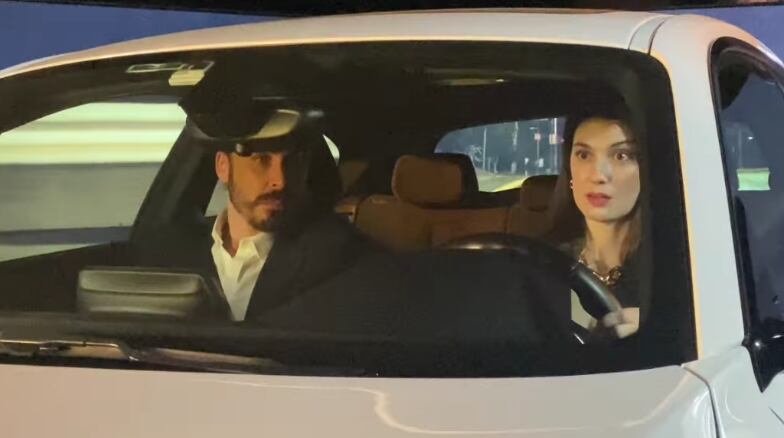 En el registro se ve cómo grababan la escena junto a Paloma Moreno, quien interpreta a Javiera, al interior de un vehículo, supuestamente conduciendo por la carretera.