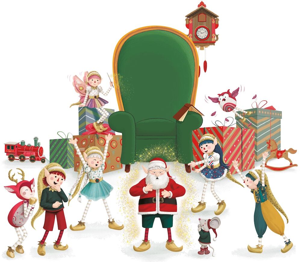 La tradición narra que alegres y coloridos duendes, junto a sus mascotas (Goldy, Chocolata y sus revoltosos cachorros mágicos) y renos y búhos inseparables, trabajan haciendo los regalos para los niños del mundo entero y luego viajan en trineo o coloridos globos aerostáticos a visitar a los niños durante las 3 semanas previas a Navidad, llenándonos de travesuras, emociones, risas y aventuras. Después de Nochebuena, la magia regresa al Polo Norte hasta la próxima Navidad.