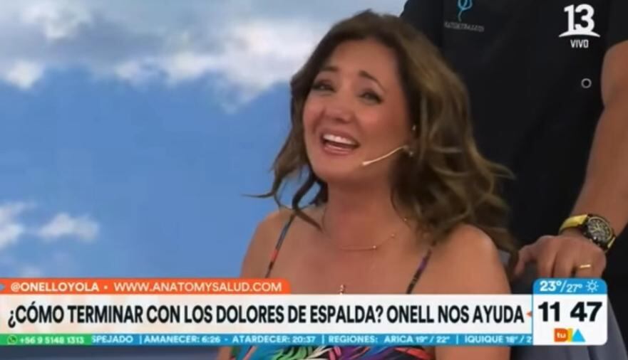 “Hay que buscar donde no se están moviendo las vértebras a nivel cervical, lo que hacemos es movilidad acá, inclina la cabeza”, le decía con toda calma el profesional a la conductora del matinal, cuando se pronto hace un movimiento rápido, provocando el exabrupto.